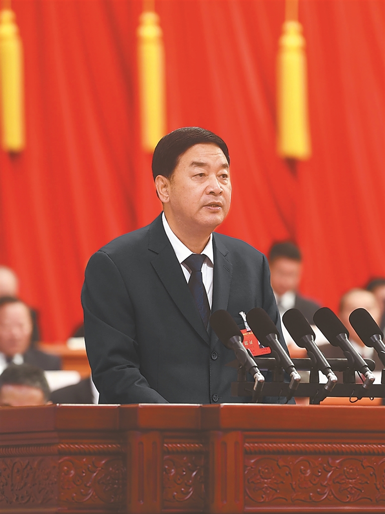 2月1日上午,自治区第十二届人民代表大会第四次会议举行第二次全体会议。自治区人大常委会主任严金海向大会作自治区人大常委会工作报告。平措旺堆 摄
